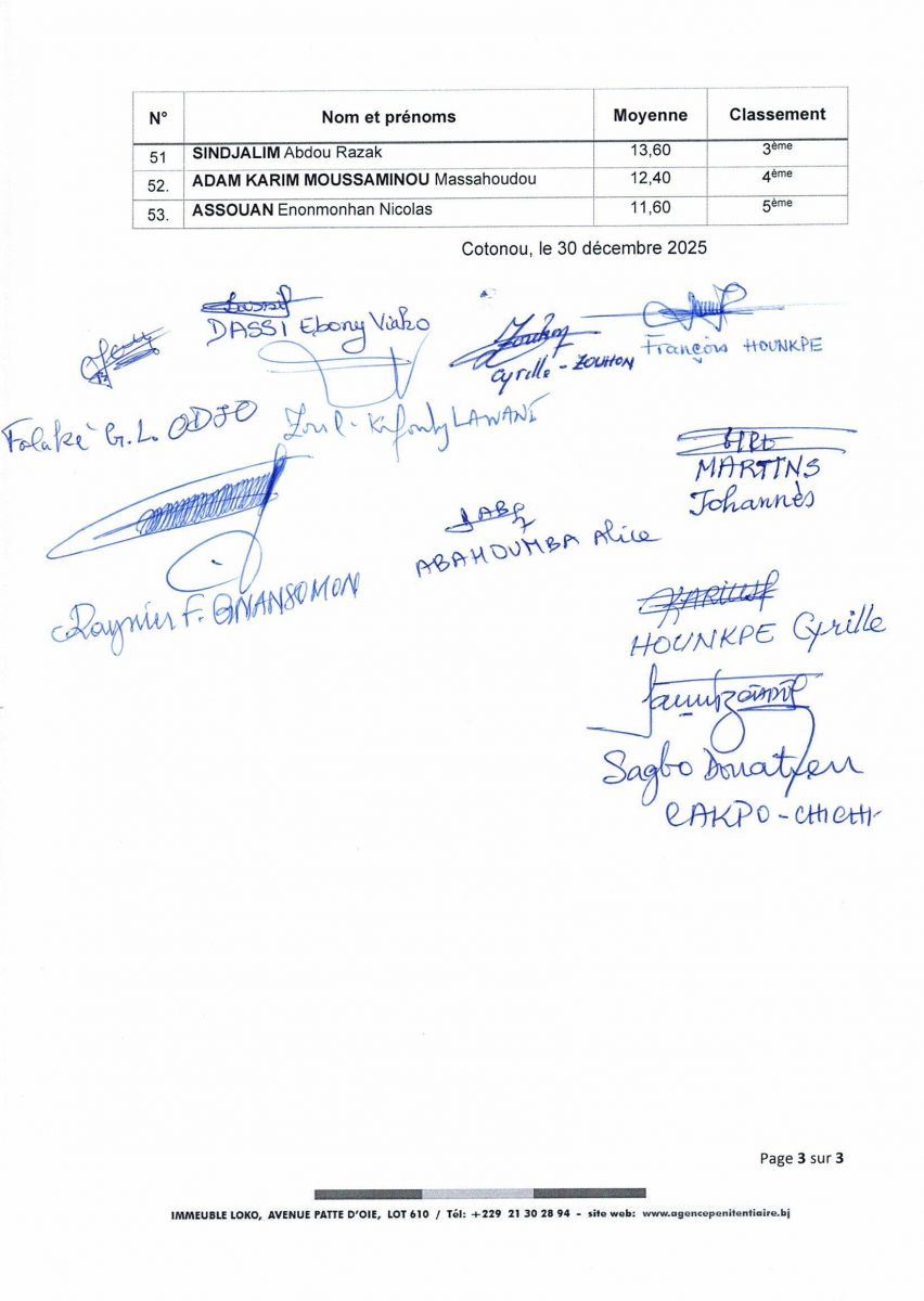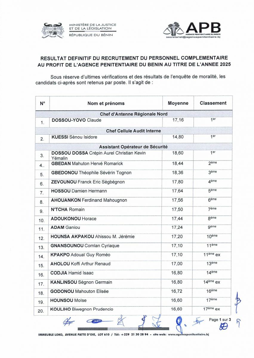 Sous réserve d'ultime vérifications et des résultats de l'enquête de moralité, les candidats ci-après sont retenus par poste